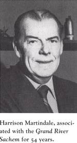 The Sachem office is still located in the building erected by Messenger in 1865 to house his new newspaper. The first Sachem building was on Caithness Street West on the north side. Until 1985 the newspaper and job printing were one. Today the Sachem printing is owned by Pressman’s Printing of Caledonia, who also own the building. Since 1992 the newspaper has been independently owned by a group of shareholders in the community. Barbara Martindale returned as publisher in 1993.