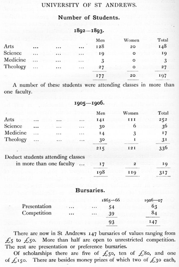 following statistics that in St Andrews between 1893 and 1906 there is a