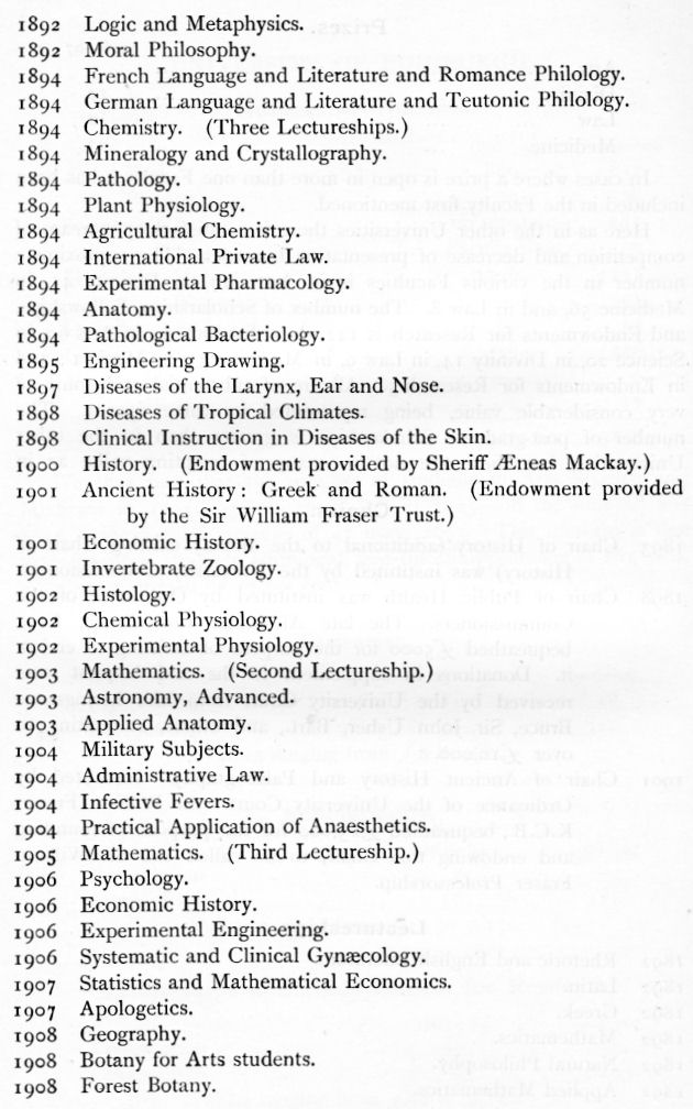 lectureships founded, preliminary examinations established, regulations for