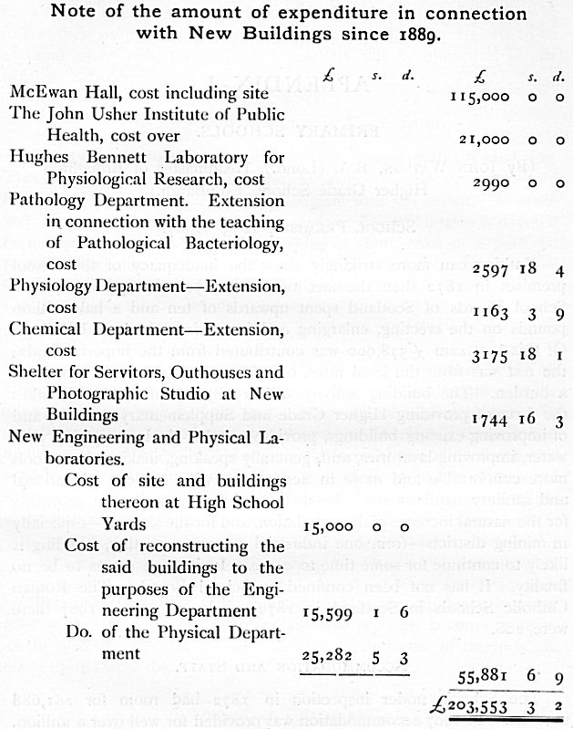 lectureships, and expenditure on additional buildings in the four