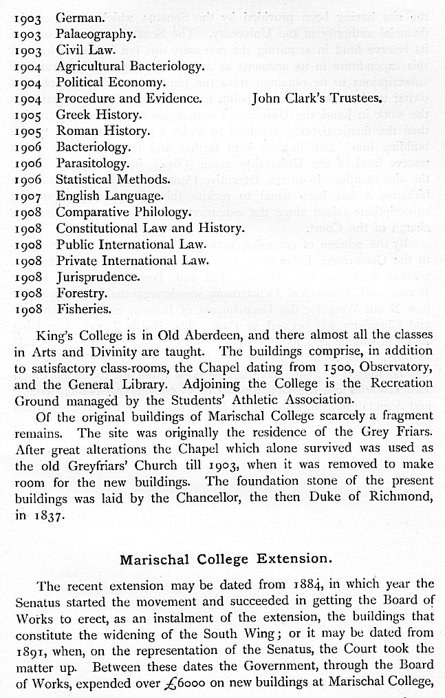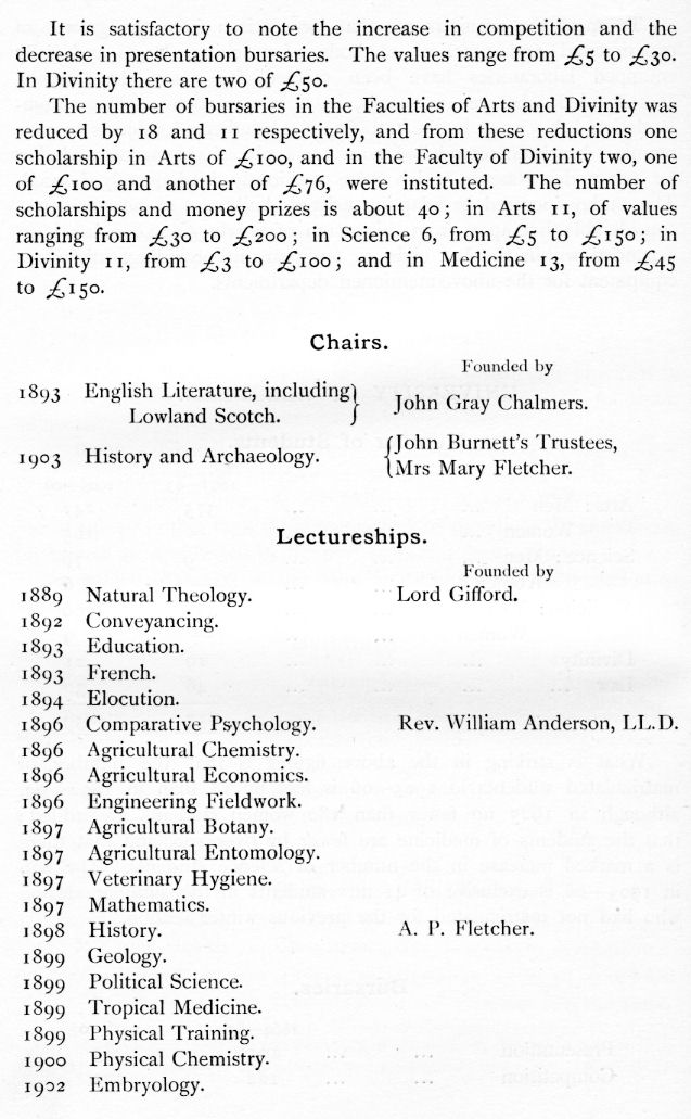 bursaries were revised, new professorships were founded, and provision was