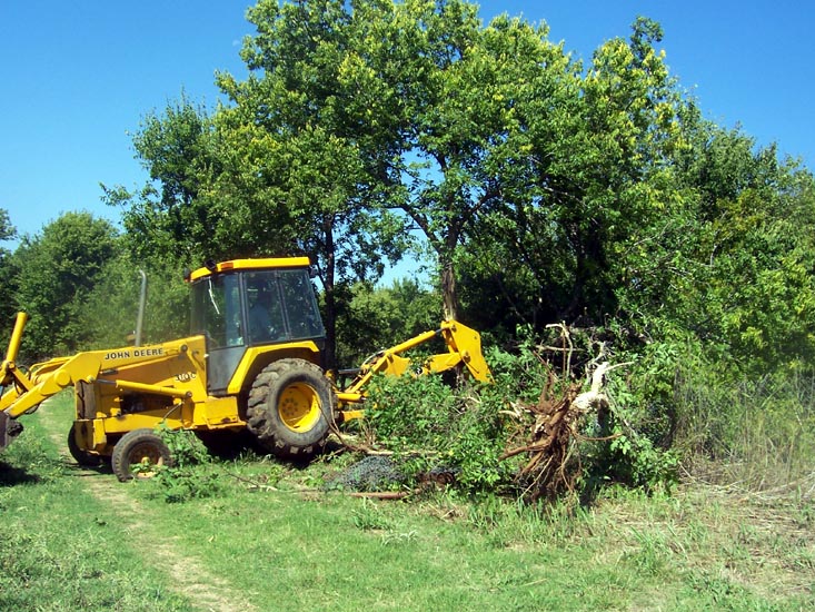 blade on the back hoe he easily pulls them out of the ground.