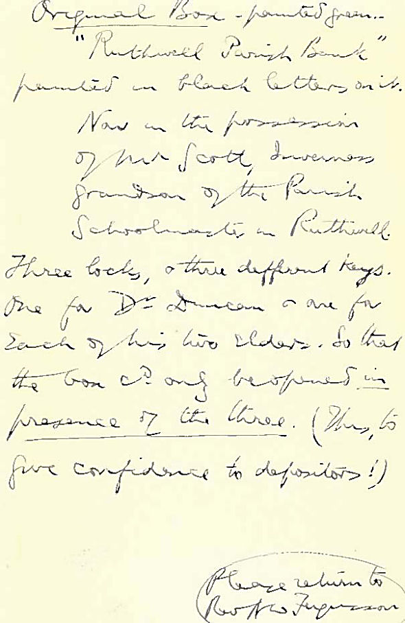 lid, "Ruthwell Parish Bank" In his own account of the box he says, "...