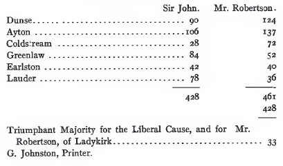 Robertson of Lady Kirk was the Whig candidate; Sir John Marjoribanks of Lees was