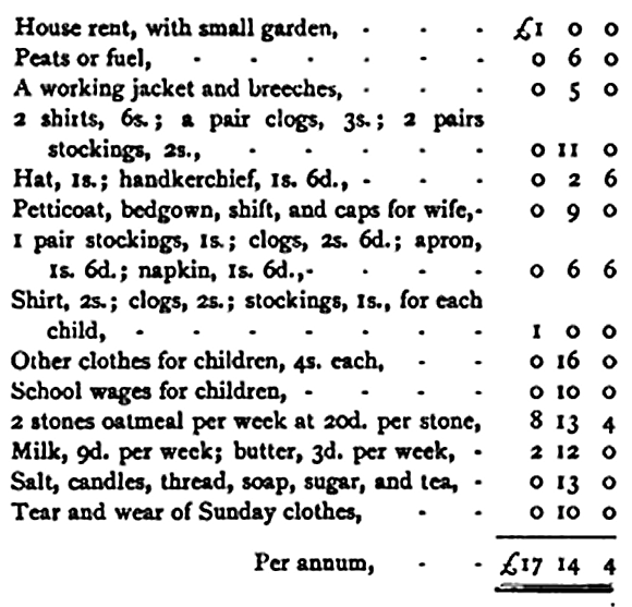 1800. At the end of the year—meal 3s., peasemeal 2s., potatoes 10d., hay