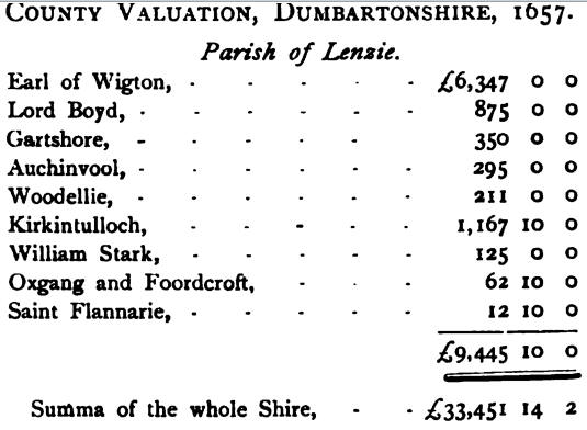 of Lenzie in 1657 shows its importance. This valuation embraced the