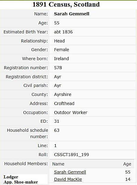 was residing with his mother Sarah, Grand Uncle John Gemmell and Grand