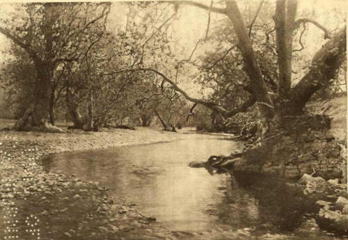 bends and mazes along the groves of a stream, or down in its pebbly bed,