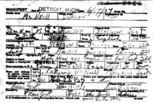 1927 on board the SS Leviathan from Glasgow. Thence Duncan in June, 1927 is