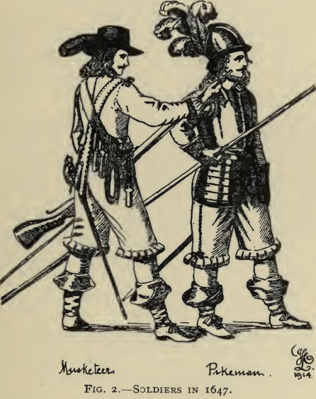 The musketeer still carries a rest for his weapon. The breeches are not so