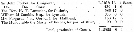 Leochel. In 1812, Sir Charles Forbes, Bart. gave L.l00 to the poor of