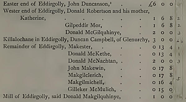 names :—Callelochan, Achianich, Wester Lurgloman, Easter Lurgloman, Wester