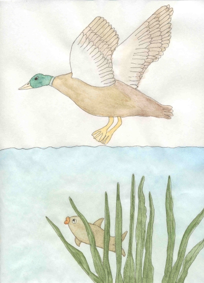 him catch fish in his beak and gulp them down voraciously. The mallard
