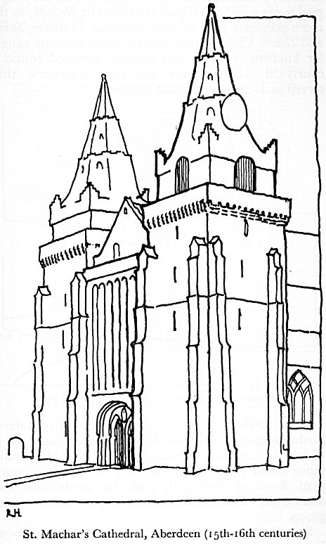 few Scottish details such as tall buttresses without breaks or offsets. On