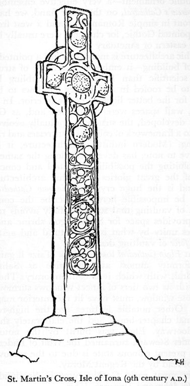 Celtic cross, the square-ended plan for churches and the tall round refuge