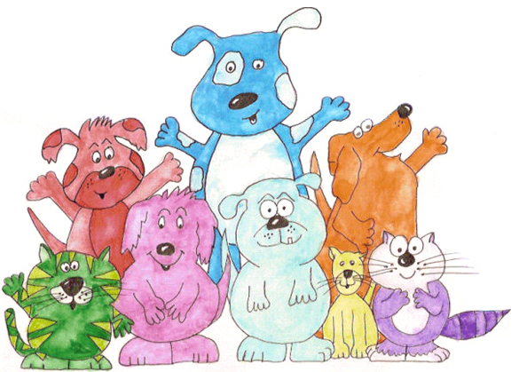 “Can we join in?” a blue dog said. “There’s much about you we admire.”