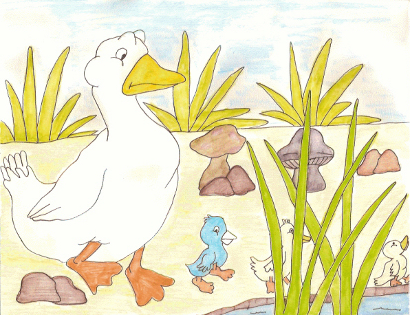 in horror. “My duckling is blue. Boo hoo. Boo hoo.” Mama sobbed.