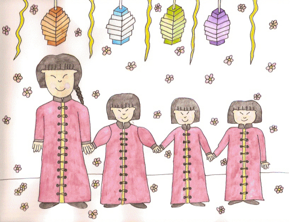 Mei's hand. Ming-Mei took Ming-Li's hand and Ming Li took Ming-Su's hand.