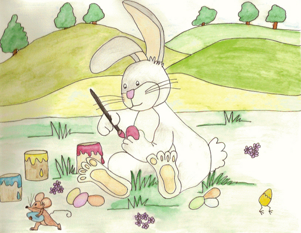 eggs for all the animals in the meadow. He got out his cans of paint and