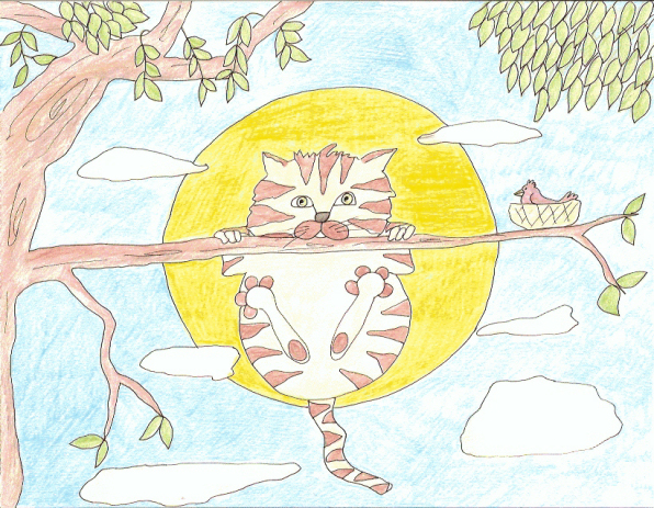her eyes. She saw the cat hanging just a few inches from her nest. “Ha