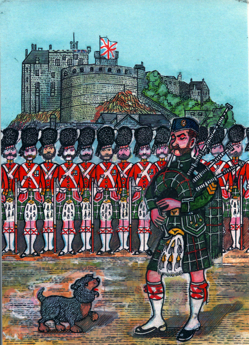 not far from Edinburgh produced a hand drawn postcard featuring Bobby’s