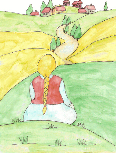 rolling green hills. She sat down and looked at the houses. “I wonder