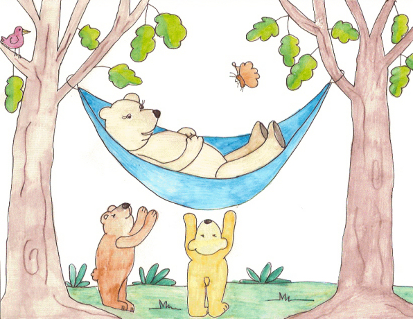 The littlest cub, Tutu saw the hammock. “Is Mama in
