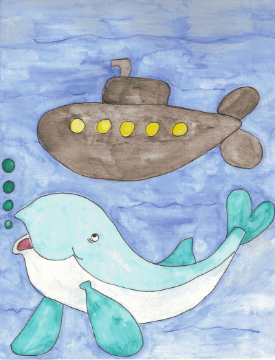 “There's the whale again, Papa. It's smiling at me.” Sara watched four