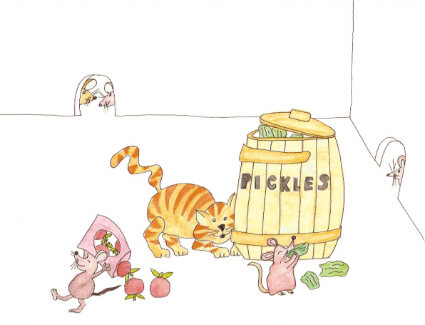 the mouse squeaked in terror and stuffed a pickle into Donald’s mouth.