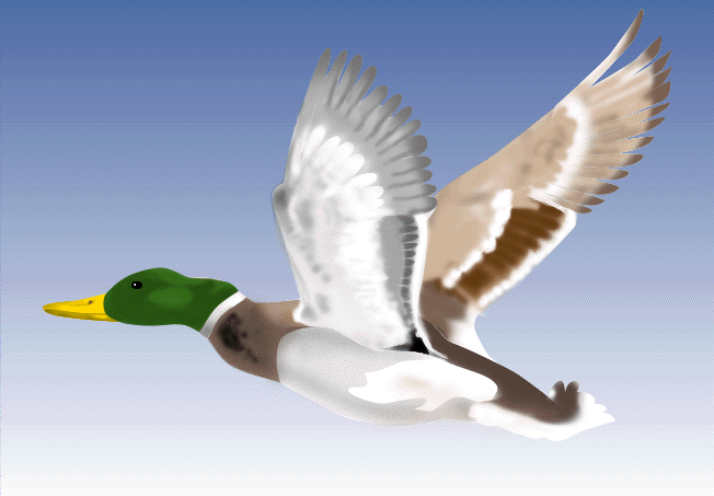 blue, mixed with pale rose pink and magenta. Devin, the mallard duck, flew