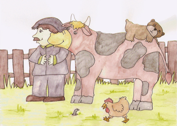 she'll give more milk.” Farmer Albert took the teddy out to the barn and