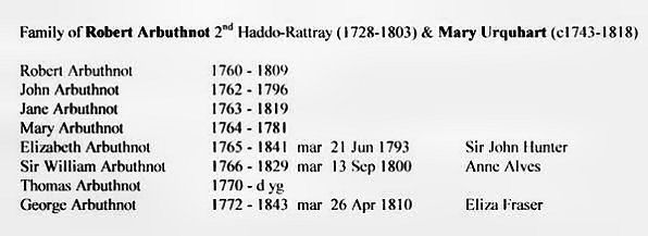 Family of Robert Arbuthnot 2nd Haddo-Rattray (1728-1803)