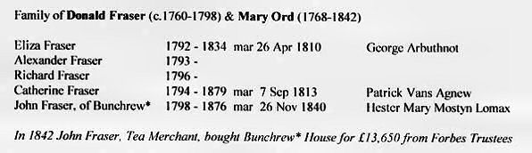 Family of Donald Fraser (c.1760-1798) & Mary Ord (1768-1842)