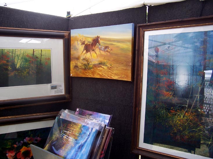 Robert Carvers rendition of horses running on the prairie and two woodland