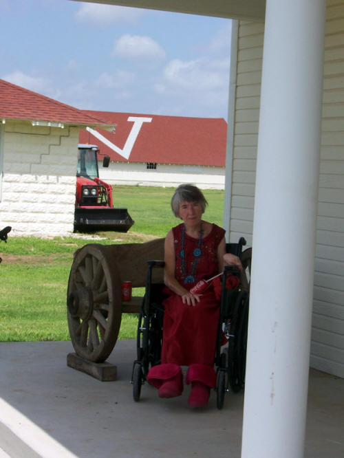 There are three stories and a basement. The bathrooms are now equiped with the latest and lovliest plumbing in order to accommodate visitors who will stay in this bed and breakfast inn.  The barn at the back has been rebuilt and is a wonderful saving of a restoration of the typical old hay loft at the top and stalls for the  mules at the first floor.  Interesting enough Jane, one of the owners, told how the barn was restored to keep its original look but had to have original beams replaced because the roof was actually swaying.  The barn is approximately 100 feet long so this is understandable how a building would drop in the center.  Jane showed us the old seed bin like we had at the ranch.  We had two barns with those and as a child I remember "skating"  on the cement floors where the Kaffer seeds were left.  I loved to watch the machines fill the rooms with seed.  The Vanselous barn was about the same size as the barn at our ranch home and it gave me strange feelings as I stood in a place like that when I was a child.
