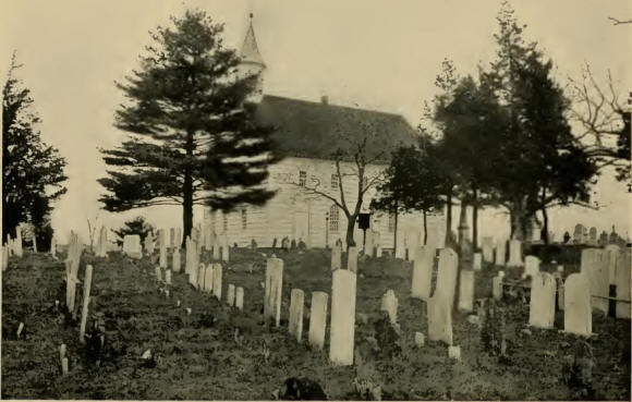 A tradition has been handed down that it was planned by the “undertakers” to locate the church upon a site lower than its present situation, and that old Janet Rhea, one of the Scotch Covenanters, seized the small corner-stone in her apron, and toiling to the top of the hill, set it upon the summit, saying to the astonished builders, “Wha ever heard o’ ganging doon to the Hoose o’ the Lord, an no o’ ganging oop to the Hoose o’ the Lord?” A fine mixture of aspiration and scripture literalness, characteristic of Covenanter stock. The agreement was made in 1730, "That the services be one Sabbath at the upper Meeting House, and so to continue successively,” which apparentW meant alternate services at the “Scots” church and the “Tennent” church. About the year 1733, under the ministry of Rev. William Tennent, jr., services were held for two Sabbaths in the new church, and one in the old church. In course of time, from the decay of the slight structure reared in the first days of the new settlement, and from the superior accommodations and more convenient situation of the newer church, the “Old Scots Meeting-House,” on Free Hill, crumbled, fell and passed into oblivion so utterly, that no tradition remains of its size, appearance, or appurtenances.