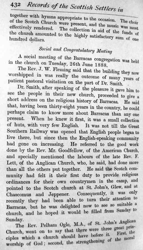 Chapter XXXV - Opening of the Barracas Church - Means of Support - Death of Mr. Drysdale