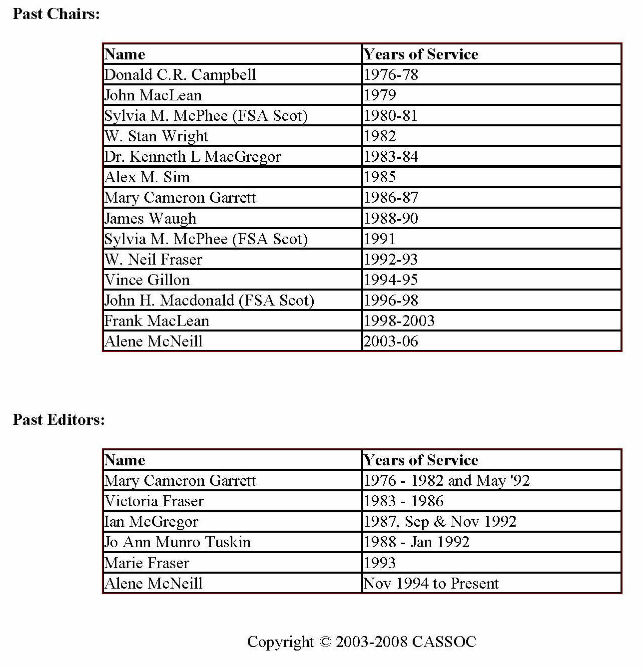 SCOTTISH SOCIETIES OF CANADA (CASSOC). Other names, such as `Scots