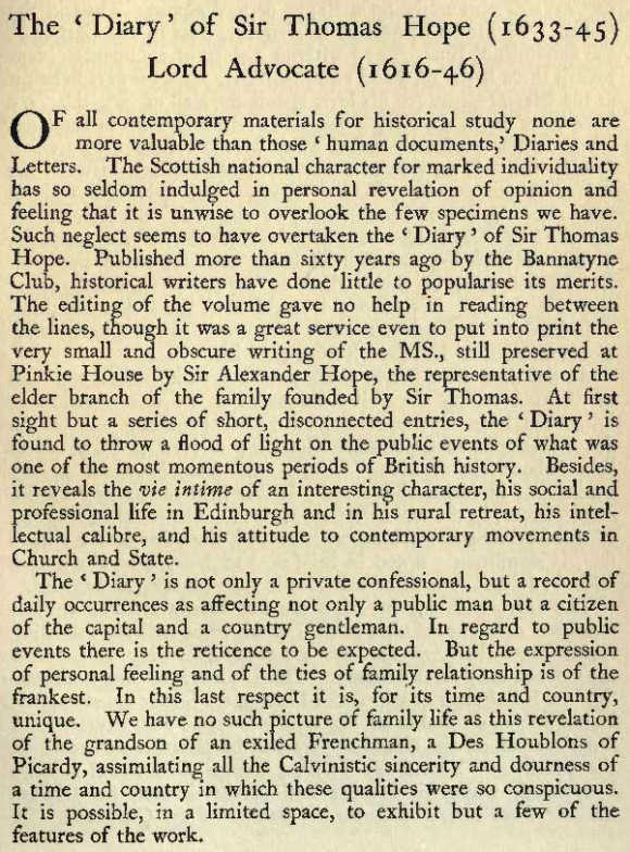 The 'Diary' of Sir Thomas Hope (1633 - 1645)