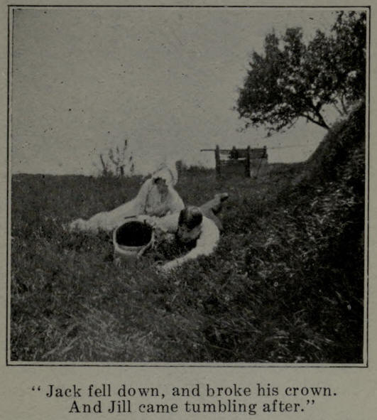 Nobody knows when this poem was written, by whom, or where. Like the story of the Noachian Deluge its variant tradition is almost world wide. It is told in every civilized language, and it goes back beyond the dawn of veritable history into the shadowy past where truth and fiction are inextricably tangled together. In the Northlands the peasants have a legend that a crusty old tyrant compelled the heroes that figure in the poem to fetch water from a distant well until they would have died from exhaustion had not the man in the moon snatched them away to live with him. And to this day these simple minded people believe, so it is said, that Jack and Jill may be seen on the face of the moon.