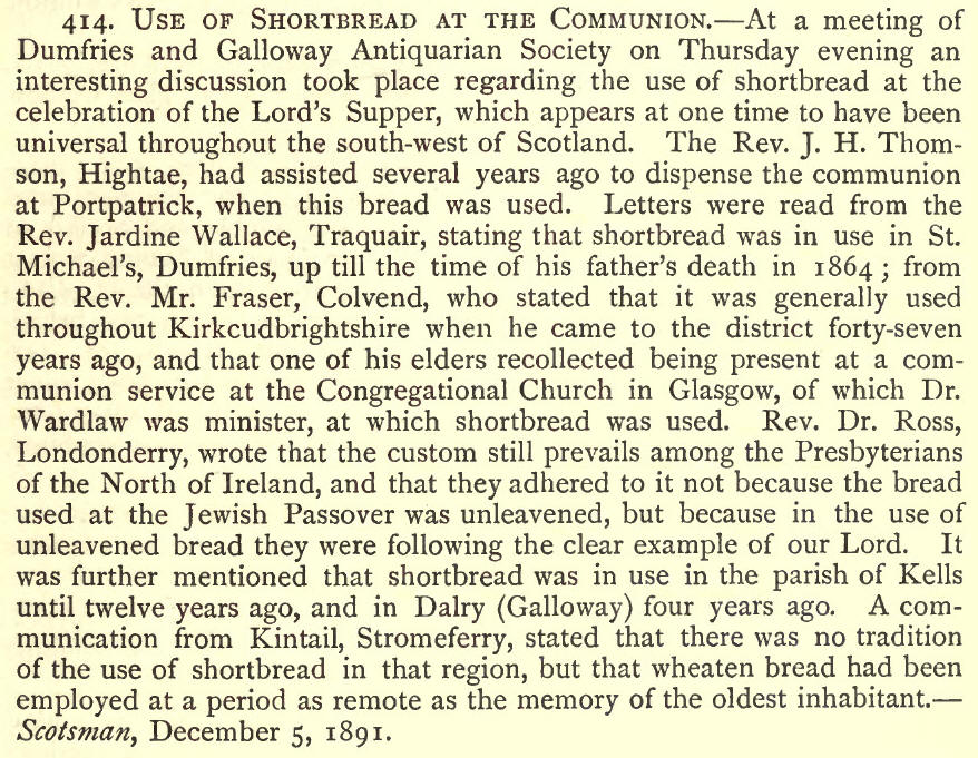 Use of Shortbread at the Communion