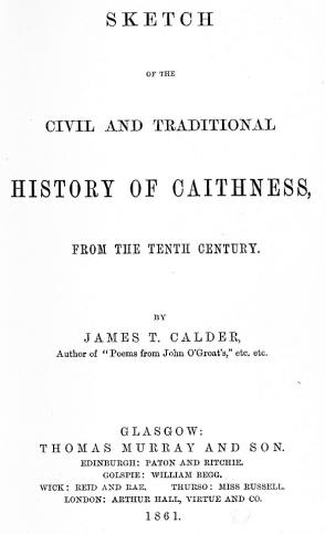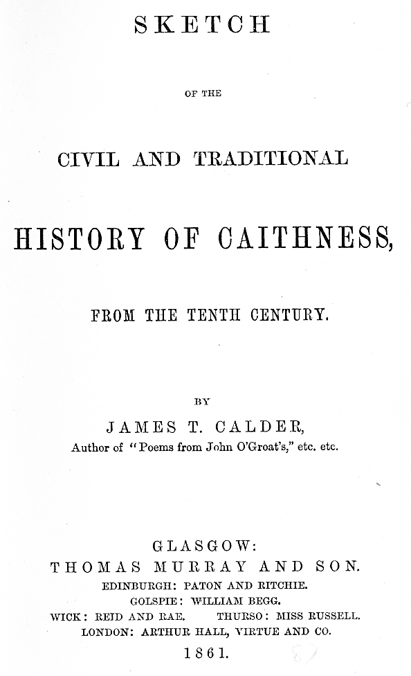 I had long cherished a desire to draw up something like a regular history of Caithness, but on making the requisite investigation, I found that neither the public records of the county, nor yet family papers, afforded sufficient materials for the purpose. The present work, therefore, is merely a Sketch or outline mostly drawn from other sources, and in some measure aided by local tradition. The writer to whom I have been chiefly indebted for information regarding what may be called the ancient history of Caithness, is Torfaeus, whose authority on this point is justly entitled to credit from the following circumstance:—When the Orkney islands, of which Caithness formed a part of the earldom for so many hundred years, had from increase of population and proximity to Scotland become valuable as an appendage to the crown of Norway, an historiographer was appointed to reside in the island of Flota, and to record all transactions of any public moment that took place in the two counties. These were regularly entered into a diary or journal, entitled the "Codex Flatensis," or Book of Flota. The work, which was one of national importance, was, for better preservation, afterwards deposited in the royal library at Copenhagen; and from it, and the "Orkneyinga Saga"—the latter a compilation of Jonas Jonnaeus, an Icelandic scholar—Torfaeus drew the materials of his history. "Torfaeus," says Chambers, "sustains the character of a faithfill historian, and the facts which he details are probably as authentic as the early records of any portion of the British empire, while he has enabled us to correct several errors in the commonly-received accounts of Scotland." And Samuel Laing, a still higher authority on this point, says that "his history may be regarded as the only authentic record of affairs in the North for many ages."
