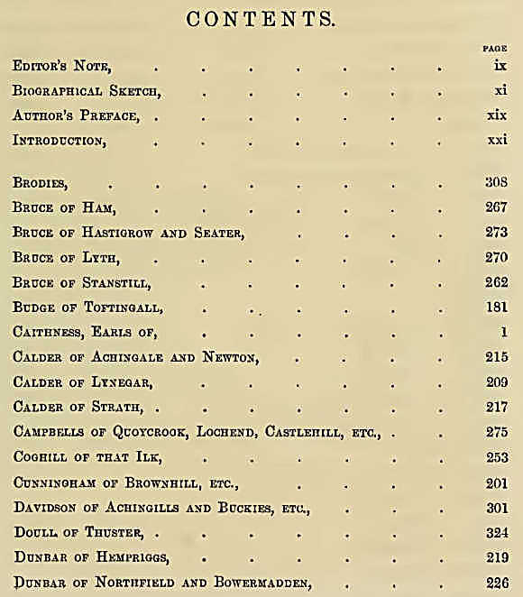 For much interesting information connected with the rentals, roads, and pedigrees of some of the principal families in the county, I am indebted to Sir John Sinclair of Dunbeath; James Sinclair, Esquire of Forss; John Henderson, Esq., Banker, Thurso; Mr James Mackay, Messenger-at-Arms, Thurso; and Mr George Petrie, Clerk of Supply for the county of Orkney. Mr Sinclair of Forss furnished me with the valuable paper on the Caithness roads, and Mr Mackay with the curious document entitled the "Liberties of Thurso." I would have gladly given, had they been sent me, some more pedigrees of Caithness families, as genealogical details of this kind are to many persons exceedingly interesting. The two woodcuts representing Ackergill Tower, and Castles Sinclair and Girnigoe, are from photographs taken on the spot by an ingenious friend, Mr John F. Sutherland, a native of Thurso, who follows the profession of teacher in Edinburgh.