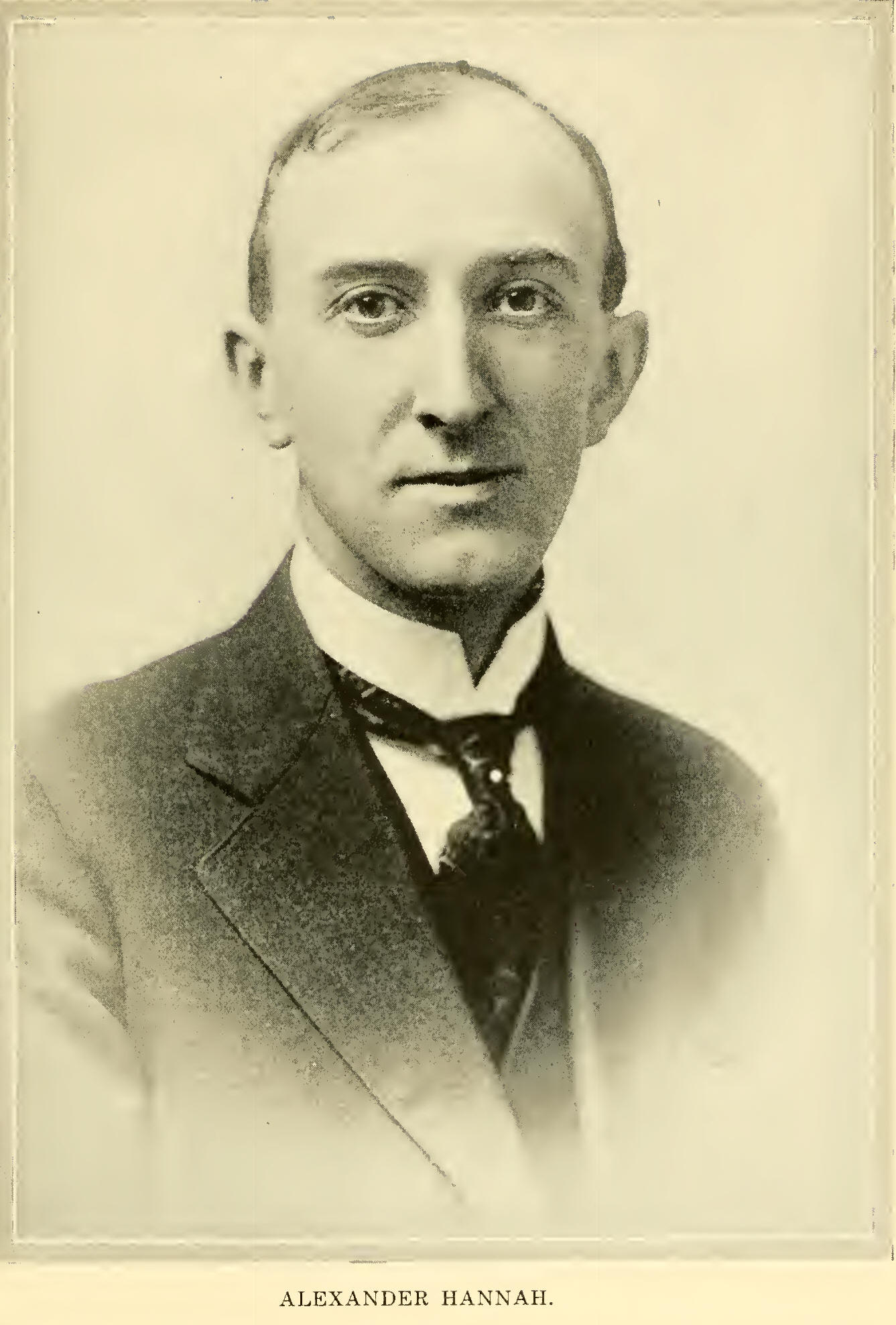 The subject of this article was educated privately in Scotland and at an early age he was articled to John Campbell Maclullich, S. S. C. and crown prosecutor for Argyllshire, afterward completing his articles with George F. Bryce, W. S., Edinburgh, Scotland. Mr. Hannah became a law student in the University of Edinburgh, being fully qualified in 1899. In the following year he became identified with the firm of Mitchell & Campbell, solicitors, Perth, Scotland, and in 1901 was admitted to practice before the courts of Scotland. In 1905 he commenced practice ill Glasgow, Scotland, and continued to do so until September, 1911, when lured by the call of the west, he left his native land and came to Canada. Believing that the western part of the Dominion would afford him better opportunities for advancement, he made his way to Calgary, Alberta, and became associated with the firm of Lougheed, Bennett & Company, and while with them was admitted to the Alberta bar. In September, 1912, Mr. Hannah became a senior member of the firm of Hannah, Stir- ton & Fisher, with which he was connected until the dissolution of the firm in 1919. In 1920 he rejoined the firm of Lougheed, Bennett & Company, being thus connected until the formation of the present firm of Bennett, Hannah & Sanford. The firm stands high in professional circles and is conducting all and lucrative practice. Mr. Hannah is well versed in all branches of jurisprudence but has given particular attention to corporation law, being regarded as an expert in this branch of the profession, and in addition to his practice he acts as lecturer on this subject to the University of Alberta.