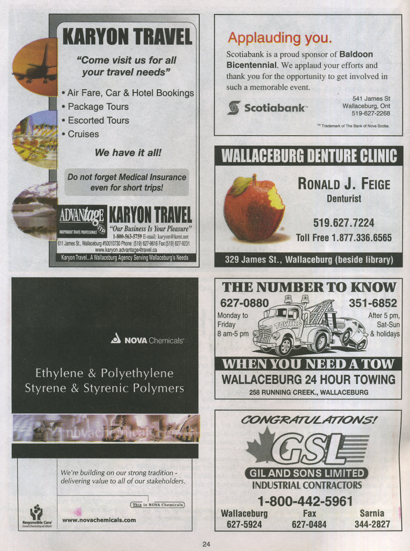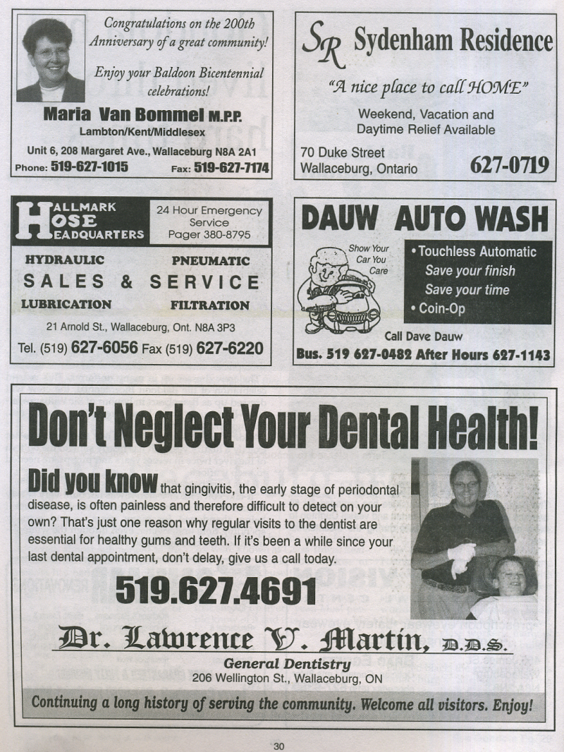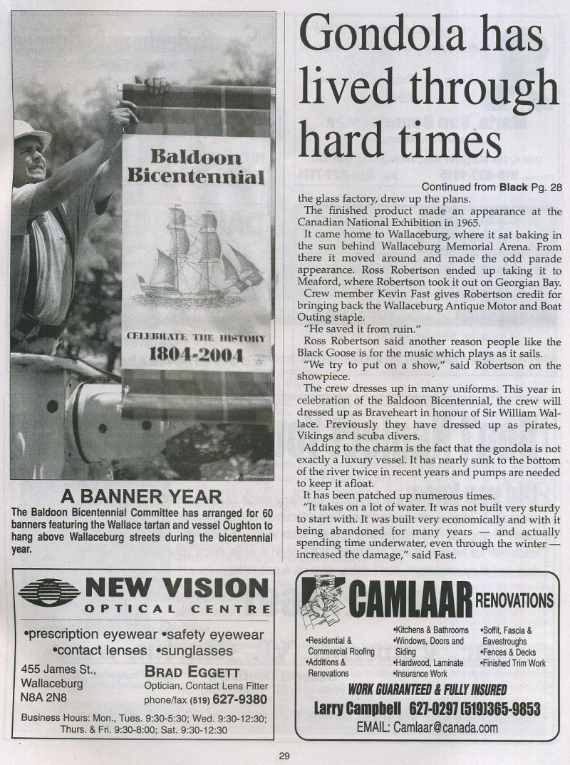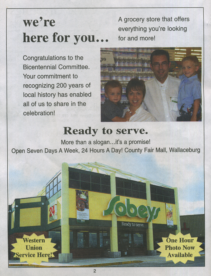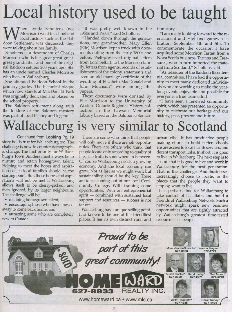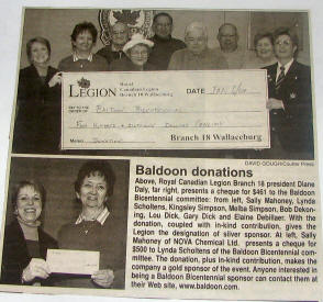 In 2004 Sally Mahoney was involved in the Baldoon Bicentennial 1804 - 2004 and when I visited her at her business, Cork 'N Keg in Wallaceburg, she kindly let me take some photos from her scrap book of the celebrations. At the same time she also showed me the giant mural that will be going up later in September onto a building on Wallace Street, Wallaceburg which I hope to attend. I did get a sneak preview just in case I don't make it.
