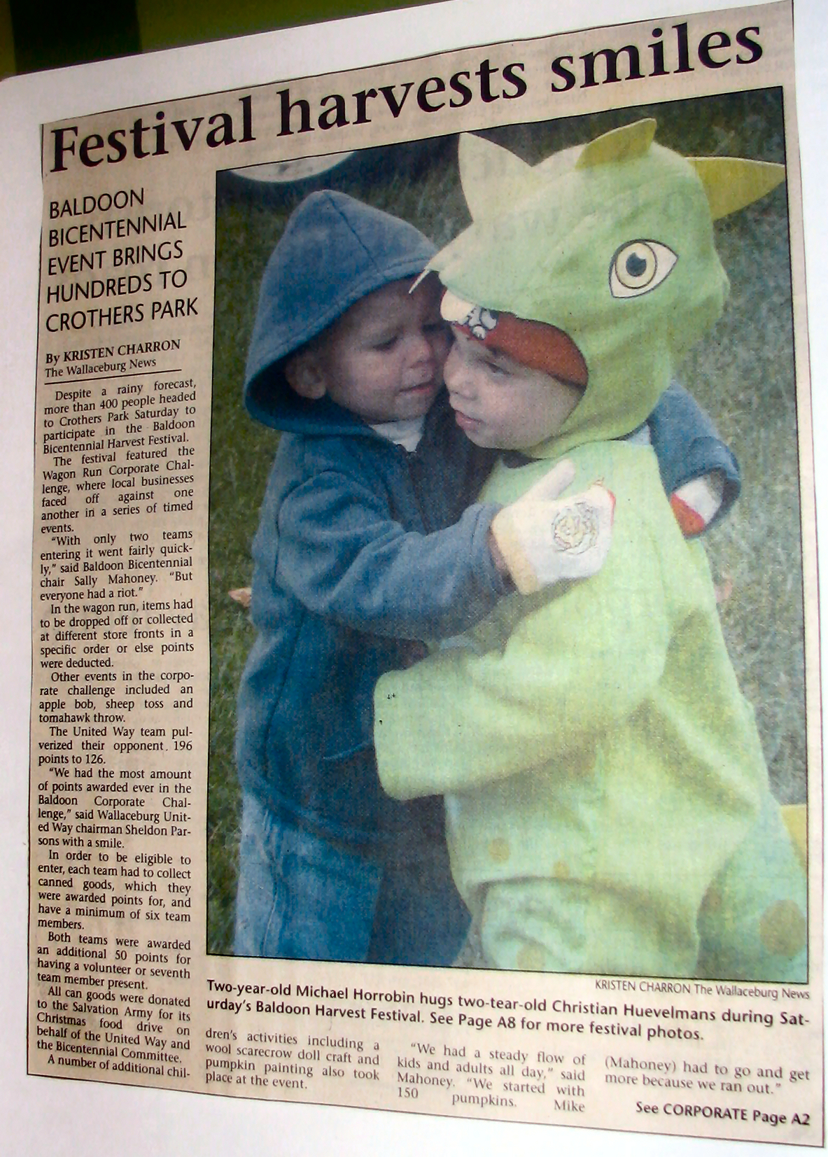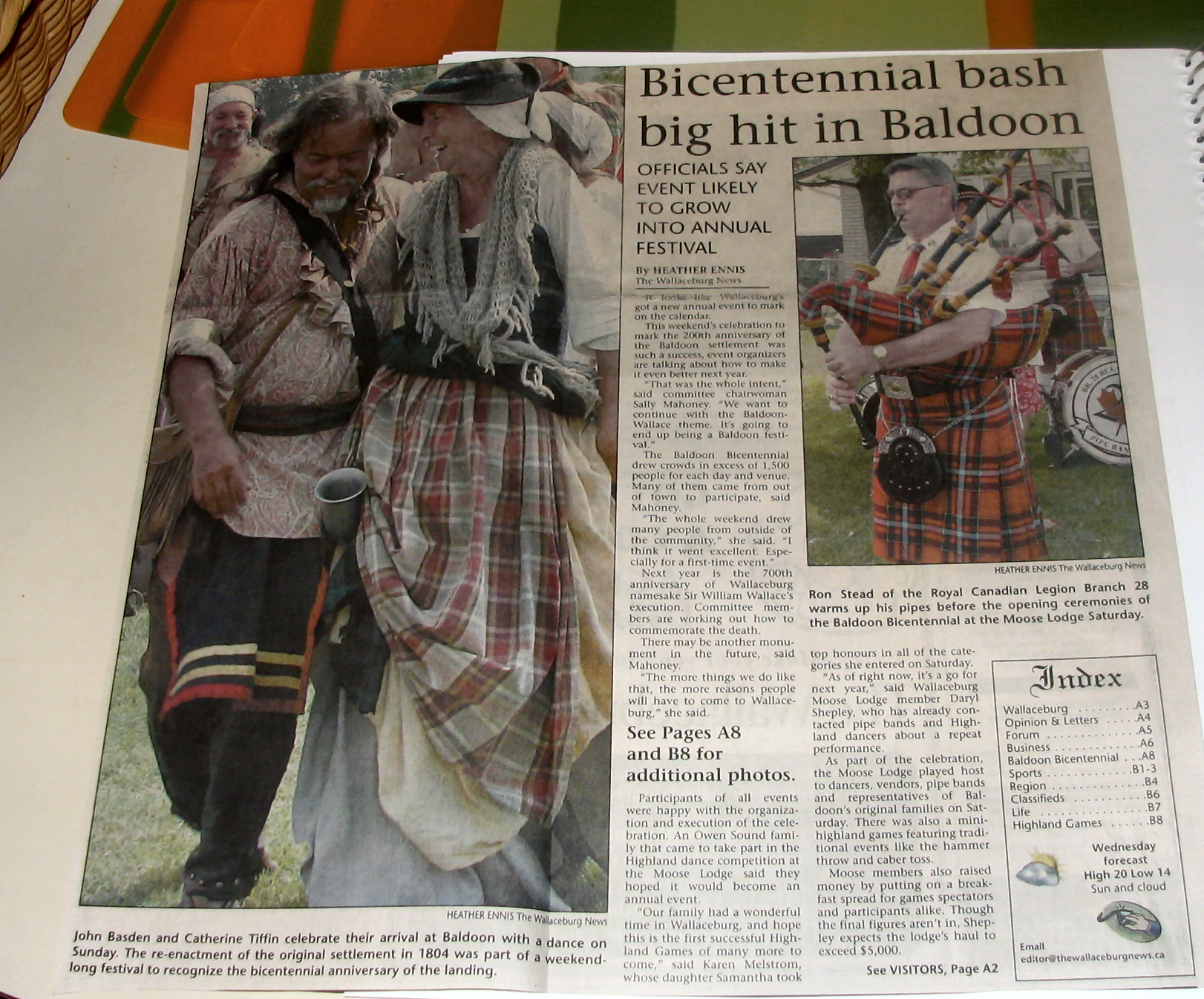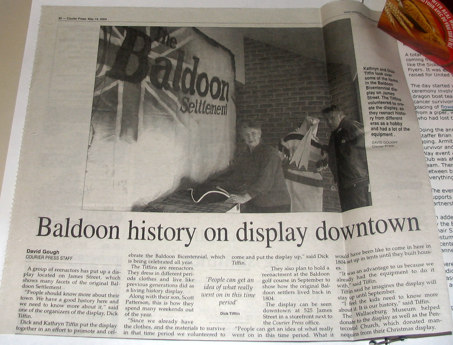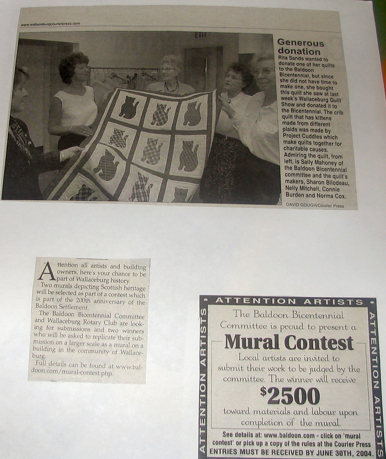 In 2004 Sally Mahoney was involved in the Baldoon Bicentennial 1804 - 2004 and when I visited her at her business, Cork 'N Keg in Wallaceburg, she kindly let me take some photos from her scrap book of the celebrations. At the same time she also showed me the giant mural that will be going up later in September onto a building on Wallace Street, Wallaceburg which I hope to attend. I did get a sneak preview just in case I don't make it.