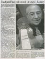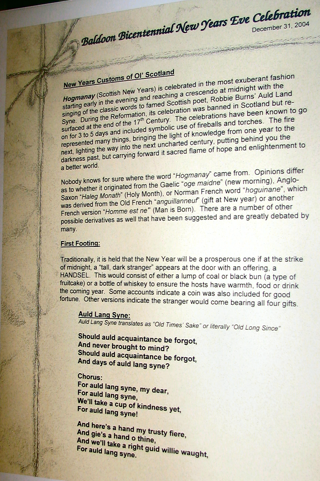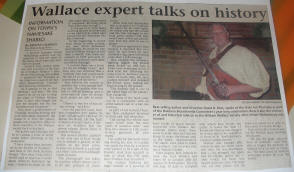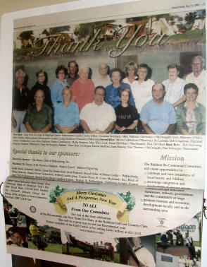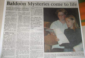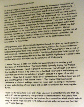 And here is Sally giving me a copy of the centennial brochure and below one of the Baldoon Bicentennial badges for which many thanks