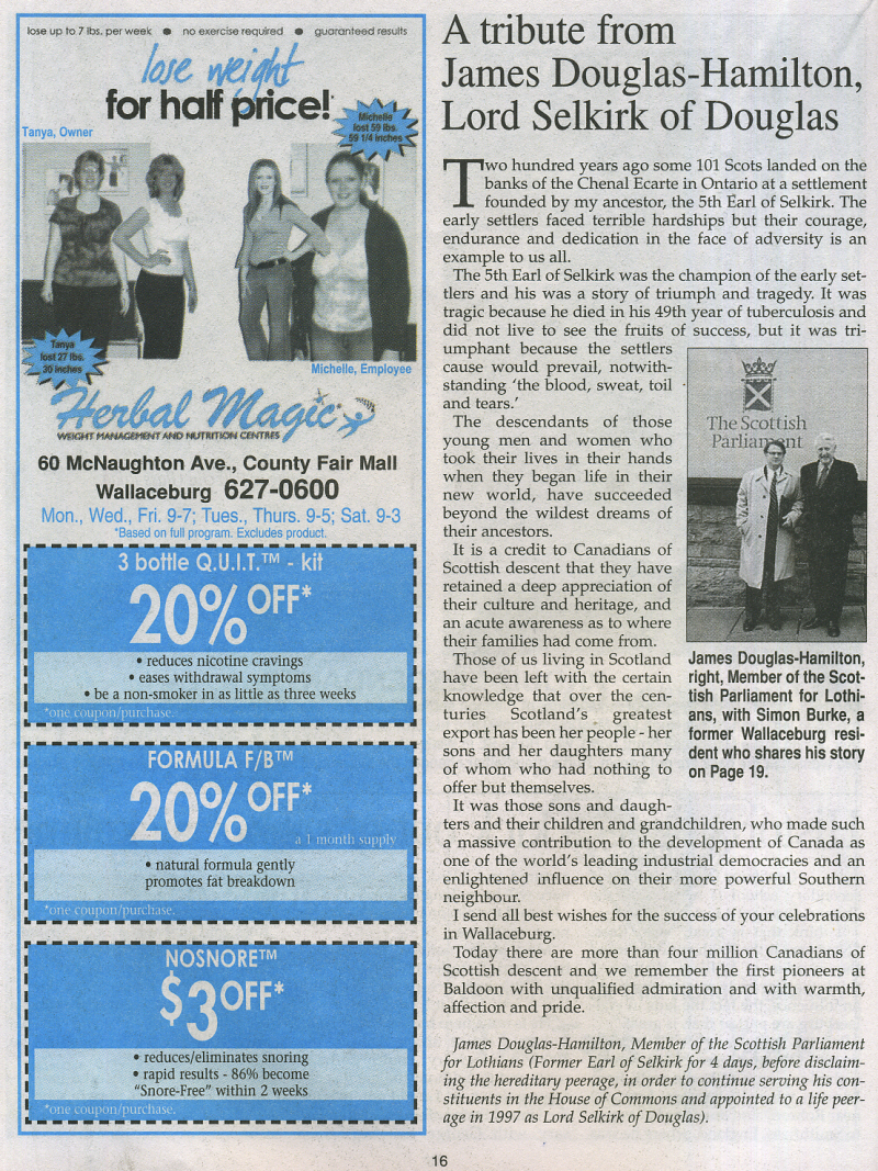 Return to Canadian Scottish History  |  Learn more about the Chatham Kent area of Ontario