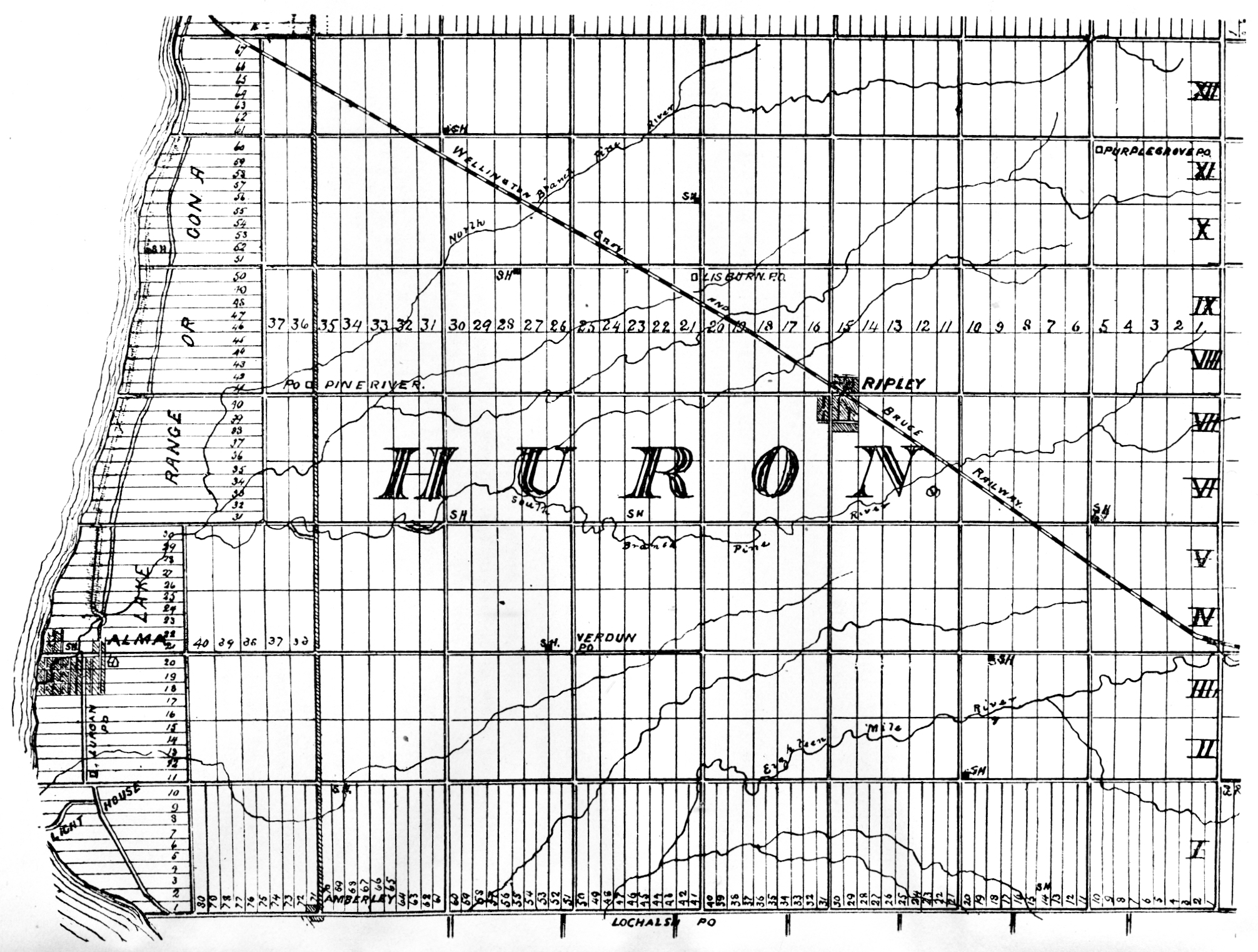 [It is but fitting that Huron, the name of the noble lake, the shore of which forms the western boundary of the county of Bruce, should be conferred upon one of its townships.]