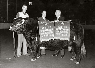 champion Shorthorn bull at the Royal Winter Fair in 1947.